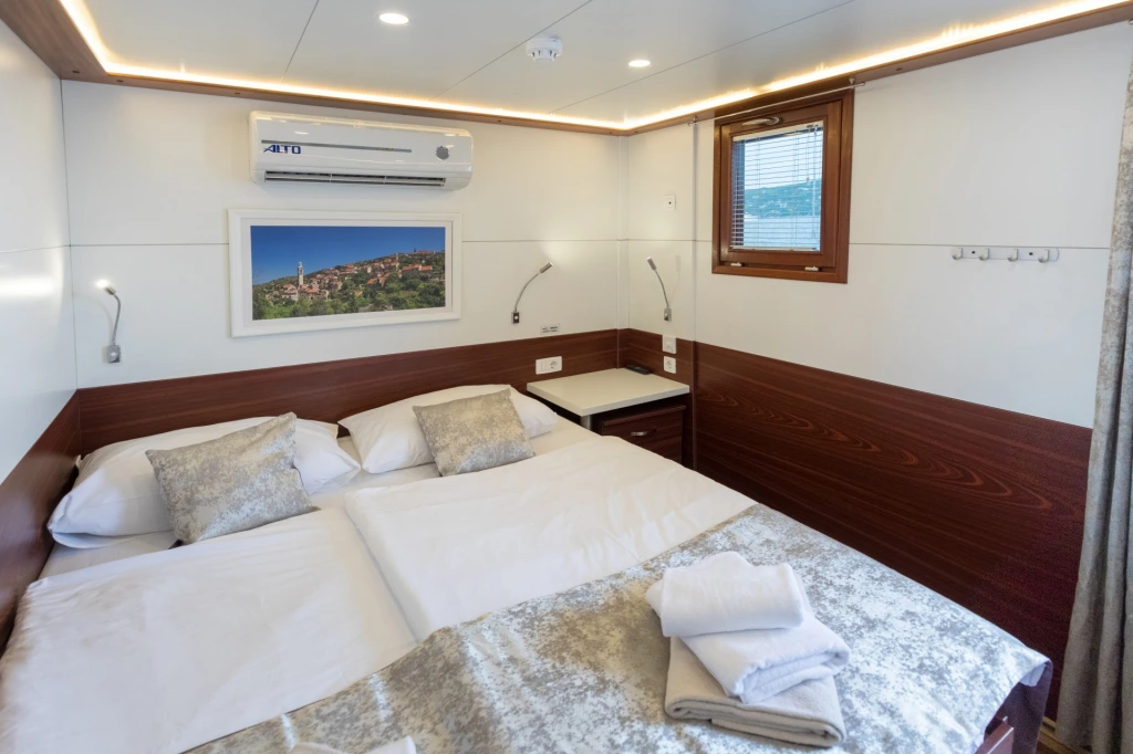 Kabinen auf dem Unterdeck befinden sich im Rumpf des Schiffes und verfügen in der Regel über ein kleines Bullauge. Gemäss kroatischem Recht und den Schiffsvorschriften müssen diese Bullaugen während der Fahrt geschlossen bleiben, um zu verhindern, dass Wasser in die Kabine eindringt. Wenn das Schiff im Hafen liegt, können die Bullaugen geöffnet werden. Auf neueren Schiffen der Kategorien Premium Superior / Premium, Deluxe und Deluxe Superior mit Stahlrumpf und klimatisierten Kabinen können die Bullaugen nicht geöffnet werden.
