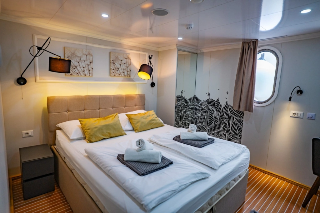 Es kommt ganz auf Ihre Wünsche an: Kabinen unter Deck sind deutlich ruhiger und bieten Ihnen ein Maximum an Privatsphäre und Freitageden. Hier schlafen Sie beim sanften Rauschen der Wellen ein und wachen mit einem Lächeln wieder auf. Möchten Sie hingegen die pure Schönheit der Adria in jedem Augenblick auskosten? Dann wählen Sie eine unserer Kabinen an Deck. Wie in einem wahr gewordenen Traum müssen Sie hier nur die Tür öffnen, um magische Sonnenauf- und -untergänge direkt von Ihrem Zimmer aus zu erleben. Jede Kabine erzählt ihre ganz eigene, besondere Geschichte…