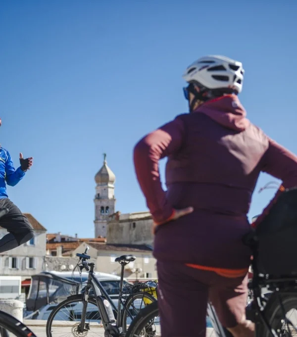 Nach dem Frühstück radeln wir von Krk über Dobrinj nach Vrbnik, einem alten Städtchen, das hoch auf einem Felsen an der Ostküste von Krk liegt. Von den um Vrbnik liegenden Weinbergen stammt der berühmte goldfarbene Wein „Žlahtina“. Gelegenheit zum Mittagessen in einer gemütlichen Konoba, bevor wir uns in Richtung der Stadt Krk aufmachen. Abendessen an Bord und Übernachtung im Hafen von Krk.