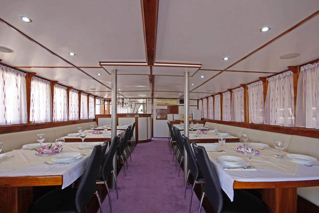 Allgemeine Daten: Länge 35,50 m, Baujahr 1955, rekonstruiert 2017. 37 Betten in 16 Kabinen mit Dusche/WC und individuell regulierbarer Klimaanlage.