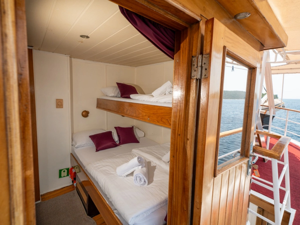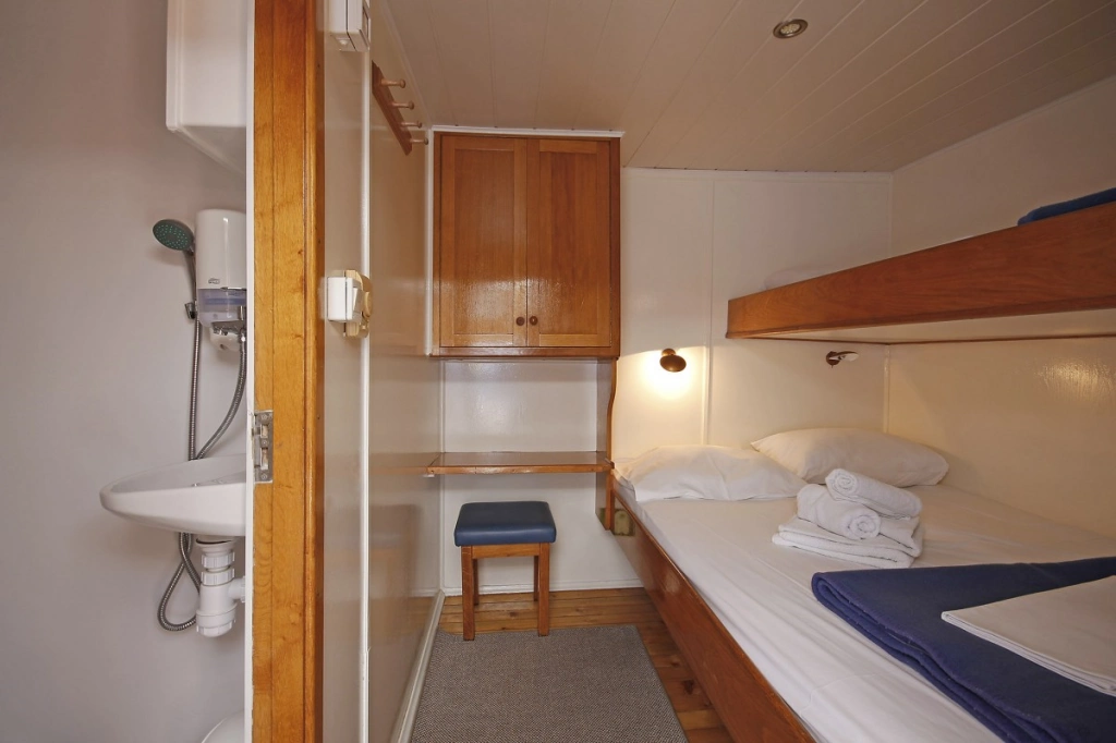 Diese Unterdeck-Kabinen sind zwar die preiswerteste Wahl, verfügen aber selbstverständlich über ein Bullauge und befinden sich oberhalb der Wasserlinie.