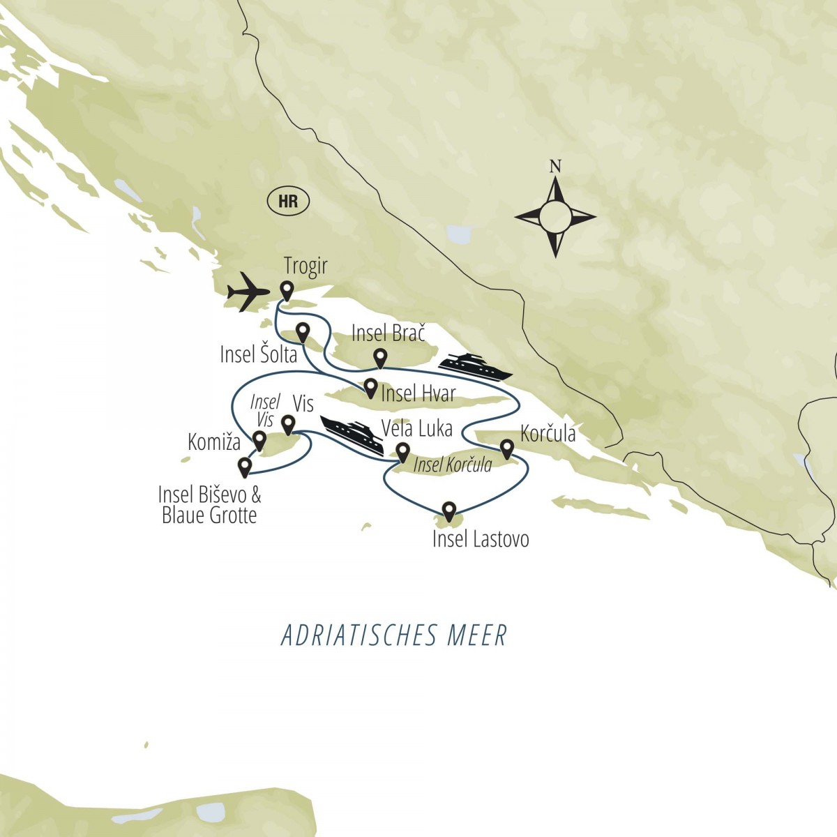 Mitteldalmatien bietet alles, was man sich an einem idealen Ferienort vorstellt: kristallklares, blaues Wasser der Adria, ein Gebirge, dass sich bis über 2000 Meter aufragt, lebendige Küstenstädte mit zahlreichen Restaurants und Bars sowie diversen Outdoor Aktivitäten, wie das Fahrradfahren, Kajaken oder Tauchen. Die Natur bietet hier unvergleichliche Möglichkeiten. Entdecken Sie den heute von UENSCO geschützten Diokletianpalast in Split oder die wunderschöne Altstadt von Trogir, die ebenfalls zum UNESCO-Weltkulturerbe zählt. Geniessen Sie einige wundervolle Tage an der atemberaubenden Makarska Riviera und baden Sie in traumhaften Stränden wir Punta Rata in Brela, der zu den 10 schönsten Stränden der Welt gekürt wurde.