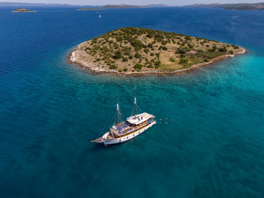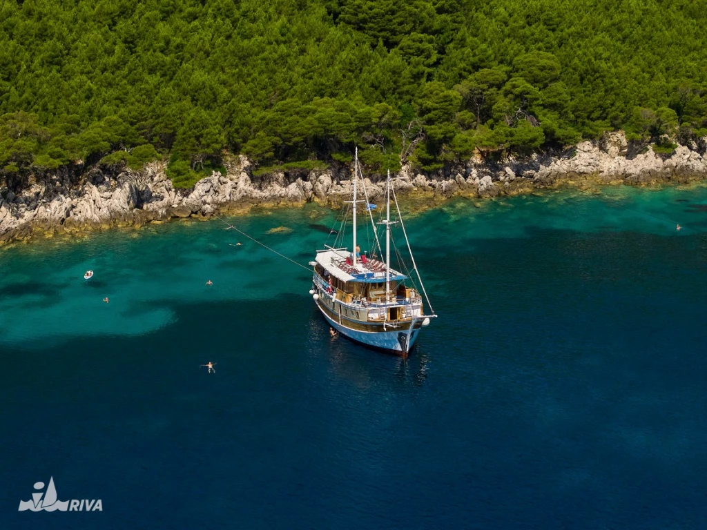 Insel Mljet: Die waldreichste Insel der Adria, deren westlicher Teil den Nationalpark Mljet bildet. Zwei einzigartige miteinander verbundene Salzwasserseen, Veliko und Malo Jezero, mit einer kleinen Insel, auf der sich ein Benediktinerkloster befindet.
